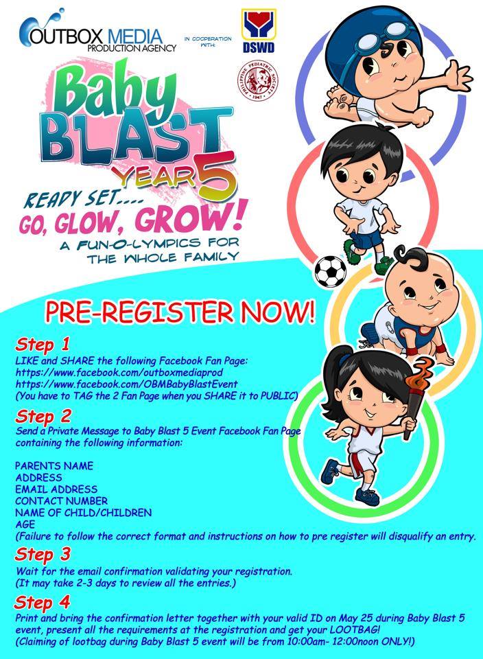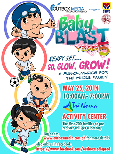 Outbox Media Production Agency, in cooperation with the Department of Social Welfare and Development and Philippine Pediatrics Society, will hold the 5th annual Baby Blast on Sunday, May 25, 2014 at Trinoma Activity Center, Quezon City.