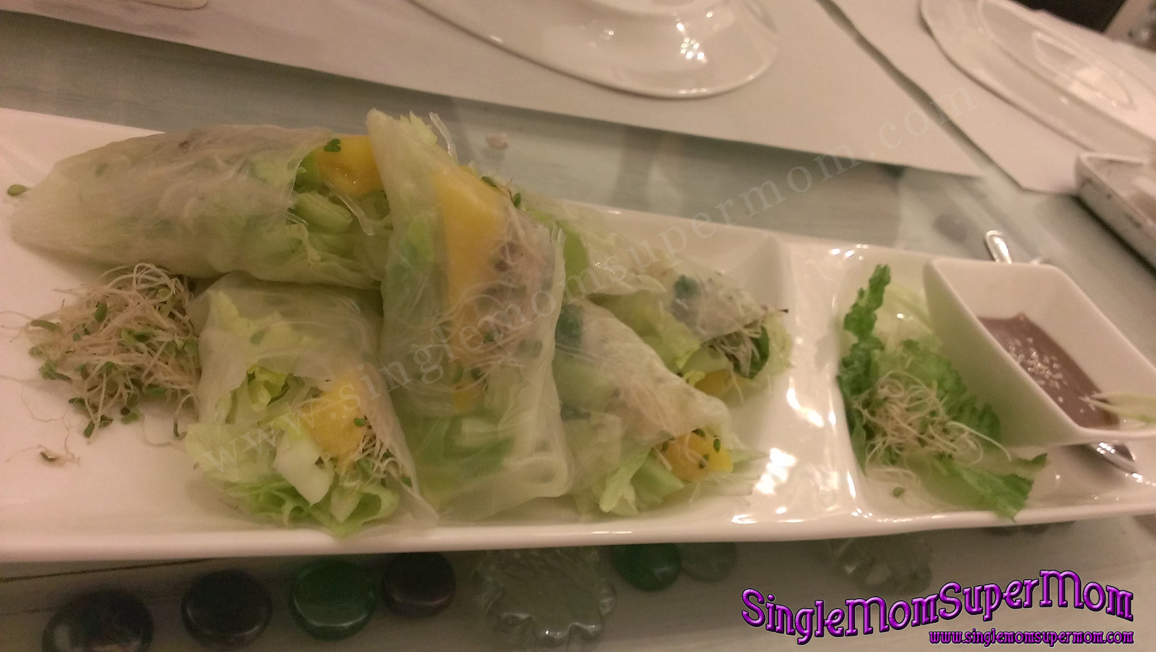 Any vegetarians would love with a mango and basil and peanut sauce.