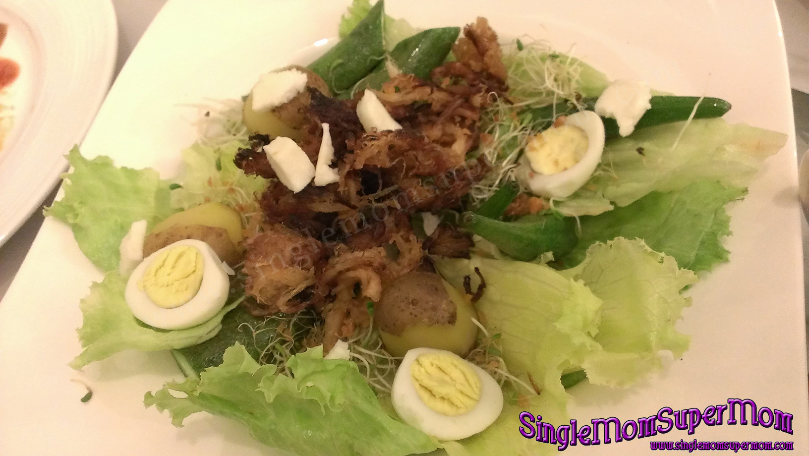 Chicken Pomelo Salad consist of pomelo, keso puti, tomato and chicken. While the Adobo Salad consist of okra, quail egg, baby potato and lettuce.