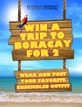 Have that favorite outfit from Ensembles? This is your chance and join Ensembles trip to Boracay for 2 in just submitting and fill up the entry form that can be seen at Ensembles Facebook tab.