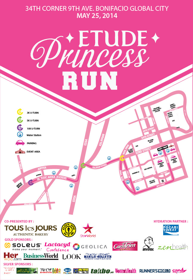 In celebration of mothers and families in May, Etude House Philippines is holding a fun run dubbed as “Etude Princess Run.” It features 3K, 5K and 10K categories that will fire off on May 25, 2014, 5 am at 34th corner 9th Avenue, Fort Bonifacio Global City in Taguig.