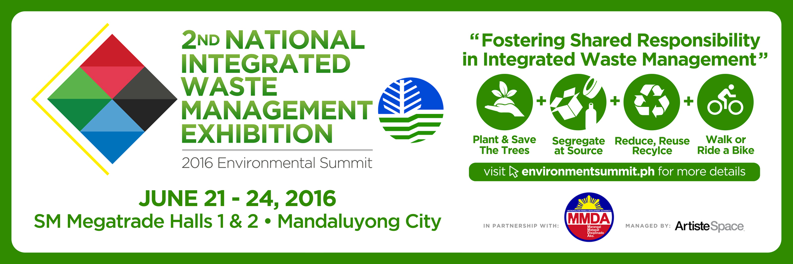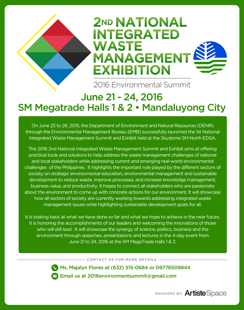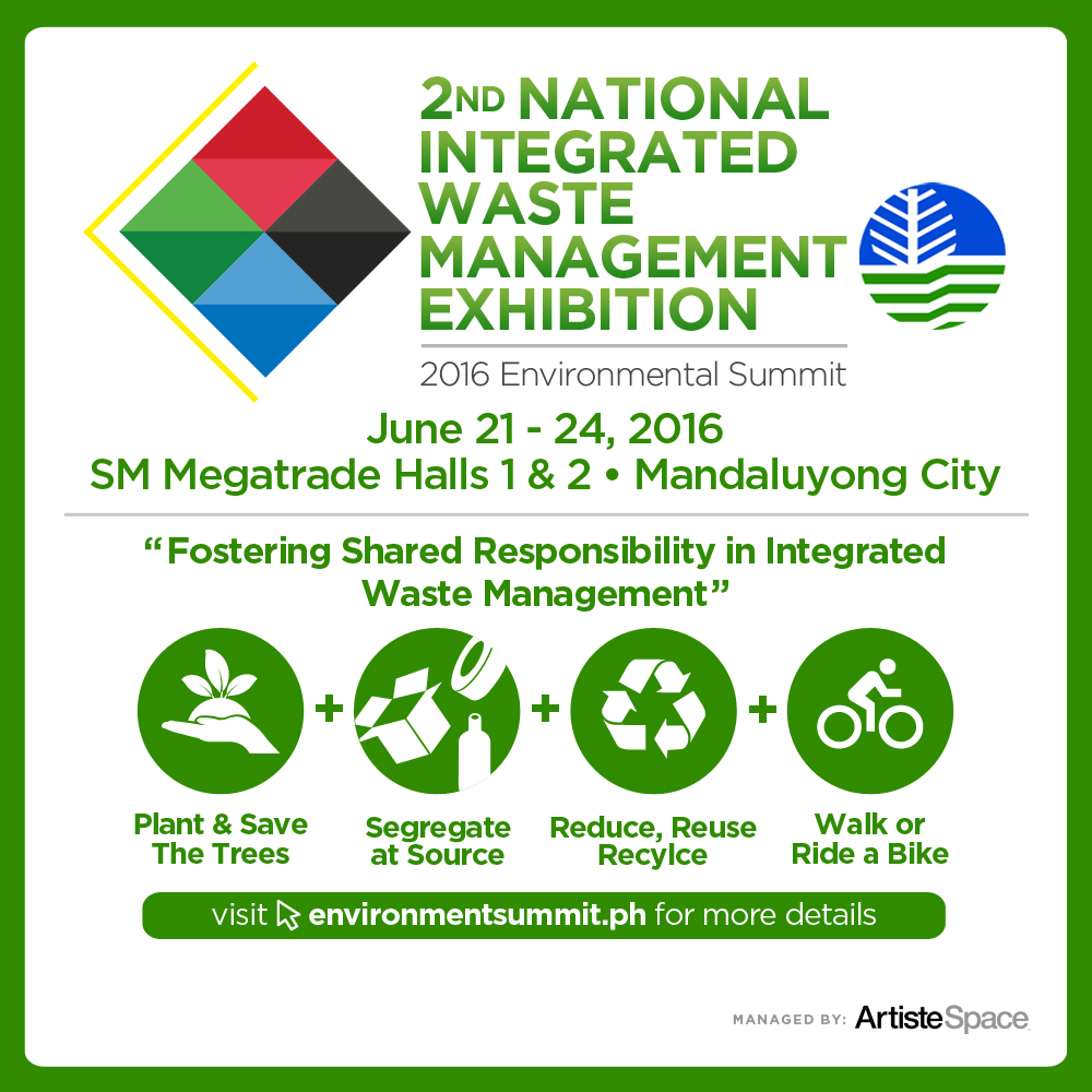 This coming June 21 to 24, 2016 will be having the Environment Summit will be held at MegaTrade Hall 1 and 2.