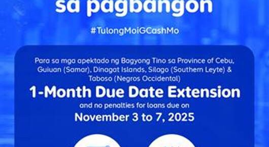 This applies to borrowers whose loans are due between November 5 and 7, 2025 and residing in areas hardest hit by the typhoon: Guian (Samar), Cebu City, North Cebu, South Cebu, Dinagat Islands, Silago, Southern Leyte, and Toboso, Negros Occidental.