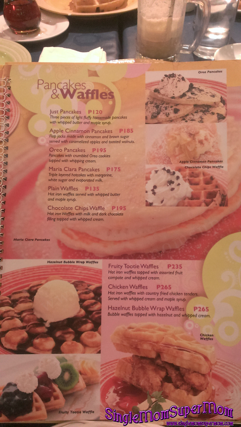 Upon checking their menu, they serve all day breakfast dishes anytime of the day. When it comes to breakfast I would love to have waffles that we never have at our house. It is 2pm in the afternoon and still never ate any breakfast yet. I ordered the Chocolate Chip Waffle for starters while waiting for the others. When my order arrived, I was overwhelmed with the size of their waffles. I only encountered such size of waffles when I was in the States.