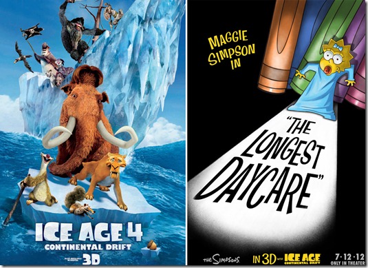 “Ice Age 4: Continental Drift” comes out in cinemas with a Simpsons short attached when it opens on July 12 in cinemas nationwide.