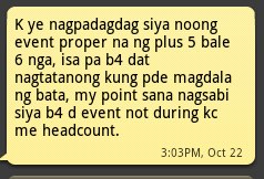 As per request of the people got involved and among the Plus 6 issue they wanted and requested to clear their names that they are just invited to that event with this blogger and they are not the one who asked the PR for a PLUS 6. That the focus should not be who are the Plus 6 but the one who invited the Plus 6. We are very sorry that your names were involved and to clarify the story we made this so that TRUE story will be revealed. Reminder the post that Myk posted on his twitter is actually a direct message that’s why the name of the culprit is named “unggoy”.