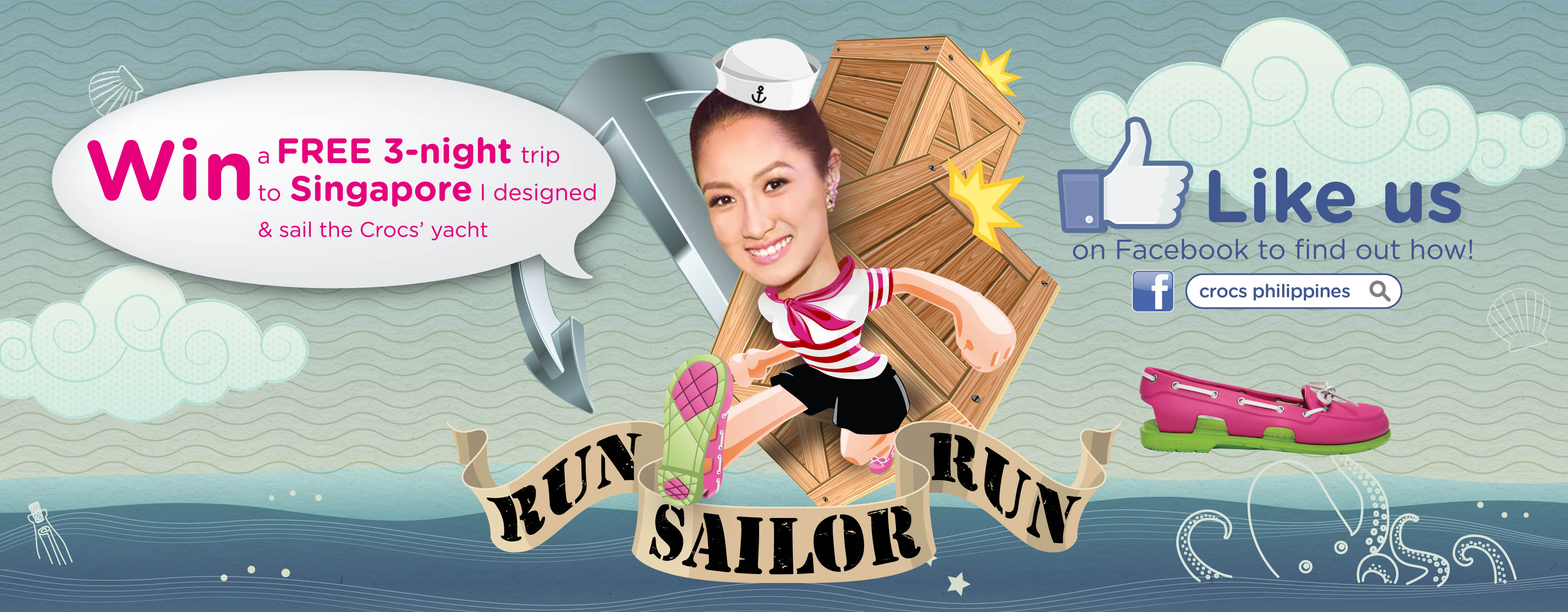 (Manila, Philippines) Get a chance to be part of a Yacht adventure at one of Asia’s key cities with Crocs on a 3-night voyage for 2, tailor-made for you by Crocs’ ambassador and stylist, Laureen Uy. A treat fit for a king filled with activities at Marina Bay Sands Casino, Raffles Hotel, and a shop-til-you-drop experience along the shopping district, Orchard Road. Get mesmerized by the beautiful view of Singapore city from the high seas on a sailing trip aboard the Crocs Yacht. An experience like no other that you stand a chance to win by playing Run Sailor Run! on Facebook.