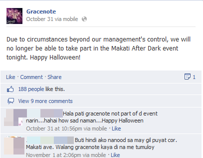 I was checking the social sites on updates of this event. I would such great disappointment to see bands that should be having a mini concert suddenly informed their fans in Facebook that they will not be pushing thru to the event.