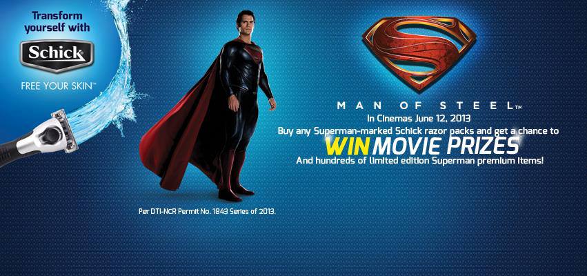 Fans will get to see the new film in all local cinemas this June 12 2013, while those wanting to get his manly looks and confidence can grab the Schick-Man of Steel pack in supermarkets, health and beauty, convenience stores, and other retail outlets nationwide. Per DTI-NCR Permit No.1843 Series of 2013.