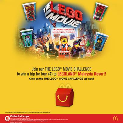 McDonald’s is also giving customers a chance to win a trip for four (4) to Legoland Resort Malaysia! Simply upload a photo of you and your The Lego Movie 3D collectible cup’s adventure in The Lego Movie Challenge tab at www.facebook.com/mcdo.ph. One lucky winner will be determined via a random draw and will receive: