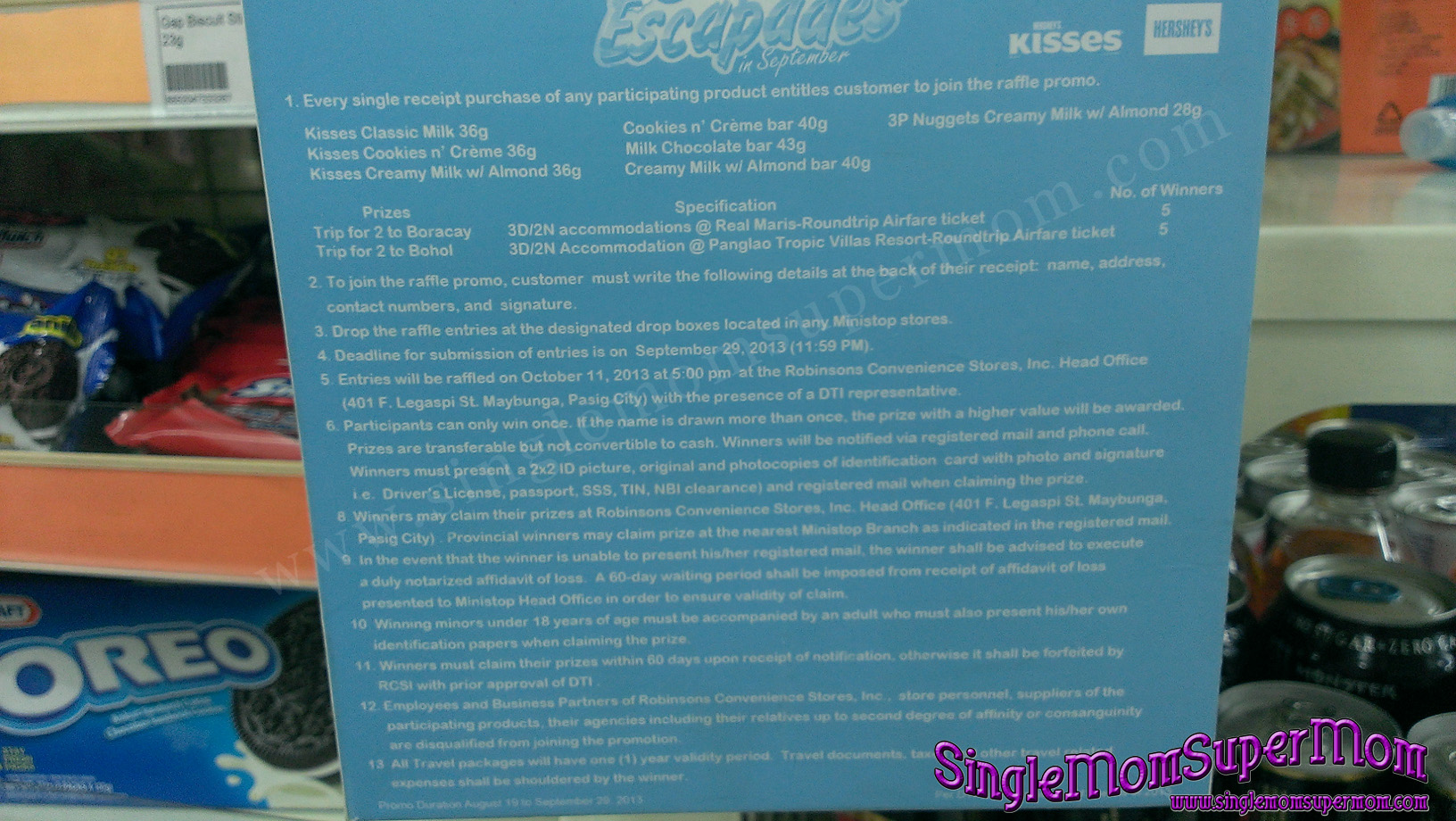 I saw another drop box beside the showtime drop-box and this one is for the Hershey kisses raffle. I told him that how can I join and again he told me any products indicated. “pwede ba ako sumali dito? bumili muna po kayo ng product nasa listahan.” I told him kabibili ko lang. But wait how can I join both contest if I only have one receipt? Again the shift leader is confused and can’t give me an answer.