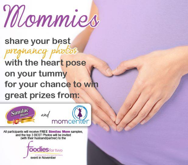 Mommies this is the time where you can share your pregnancy photo while doing a heart pose on your tummy. All Mommies will receive samples from Similac Mom and the top 3 will get to be invited to Foodies for two this coming November 2012.