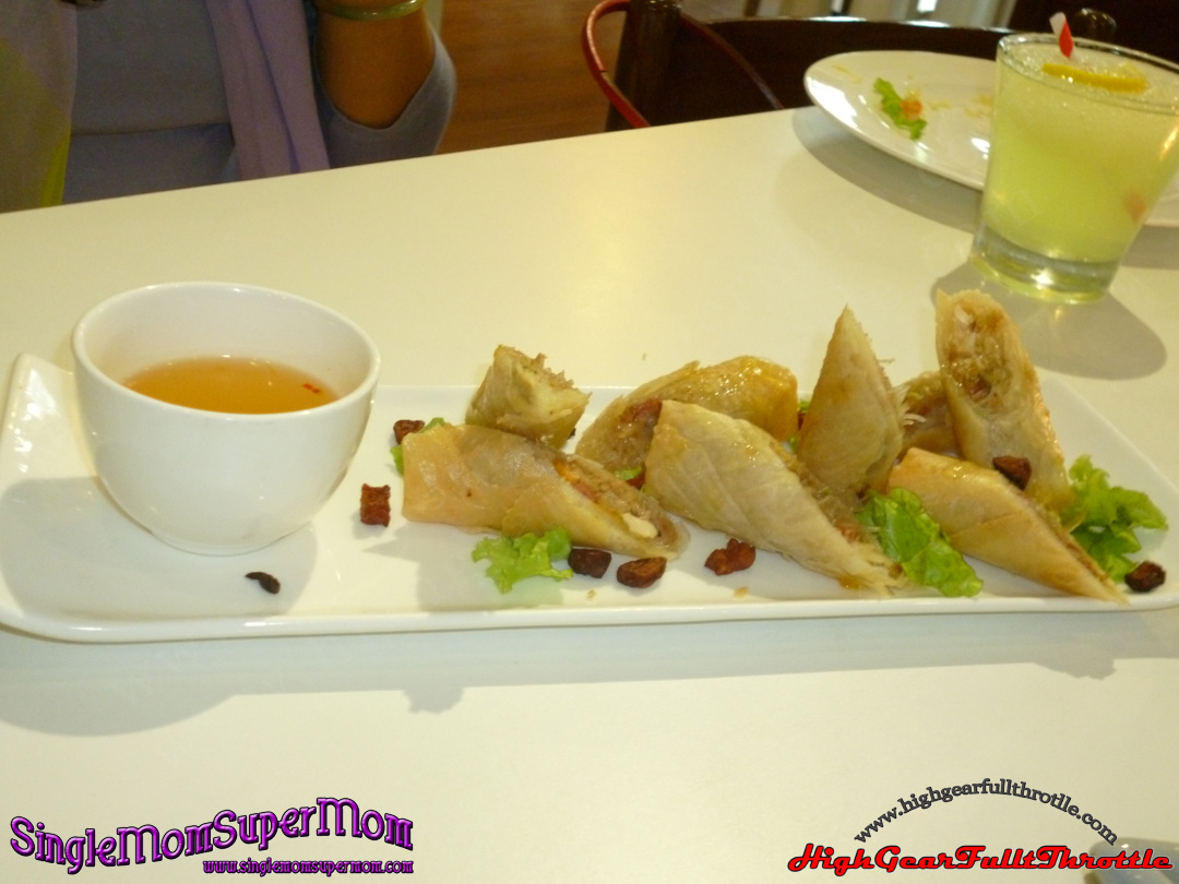 Spring rolls with stuffed bagnet, salted eggs, vermicelli noodles, chinese chorizo, fried and served with calamansi vinaigrette.