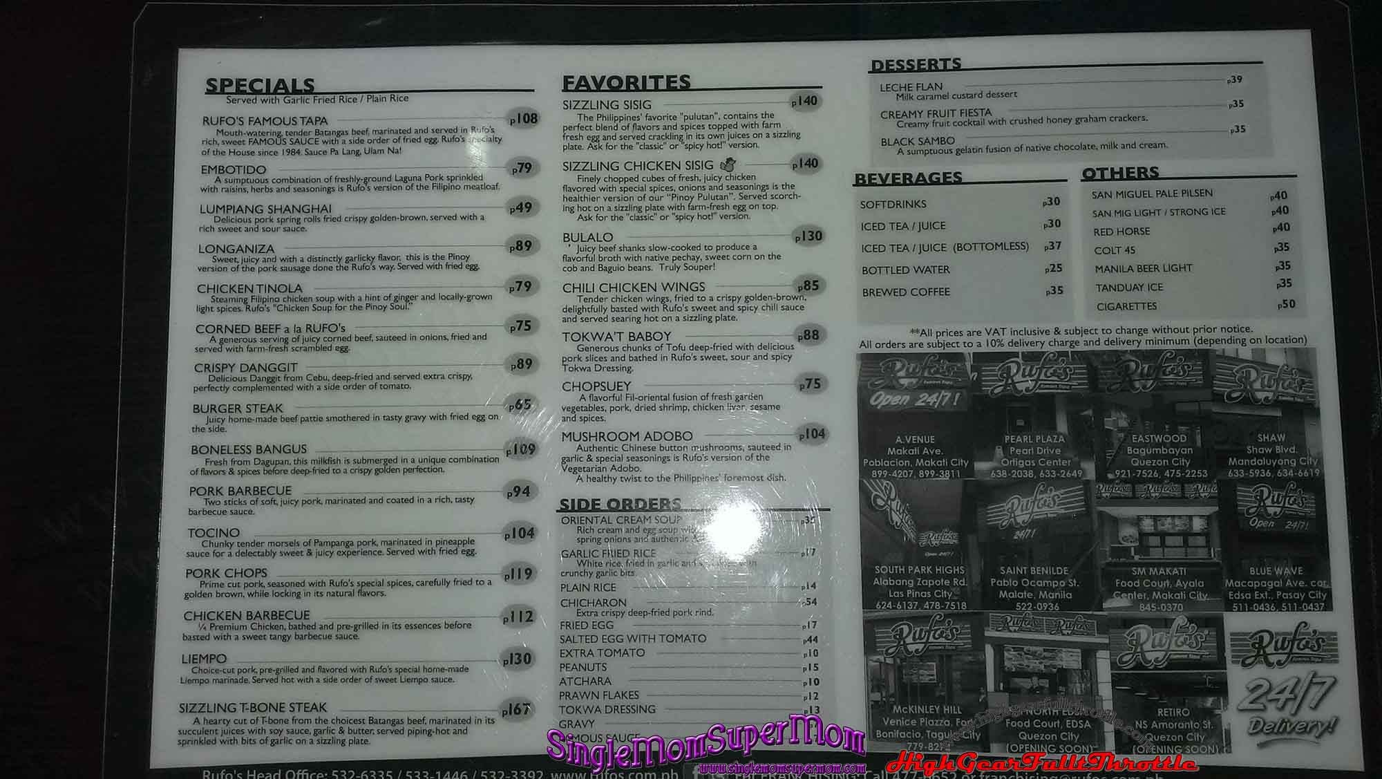 Rufo’s A.Venue immediately opened after they closed the Rufo’s Kalayaan Ave. Now Rufo’s A. Venue with their strategic location you will never going to have a hard time to look for it. They have now a air-conditioned and al-fresco sections at the 2nd floor that can seat 150 persons. As always Rufo’s maintains the affordable price that every person in a budget would look for that great meal.
