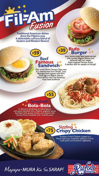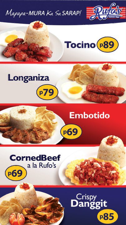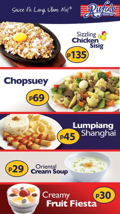 Ever wondered what happened to the Famous Rufo’s at kalayaan ave that is always destination for that great “tapsilog”. Some say they went out of business but the news is not true. True enough Rufo’s Kalayaan Ave. just moved to a much better and larger location to cater their customer demand. Rufos Kalayaan Ave are now located at A. Venue Mall, Makati City.