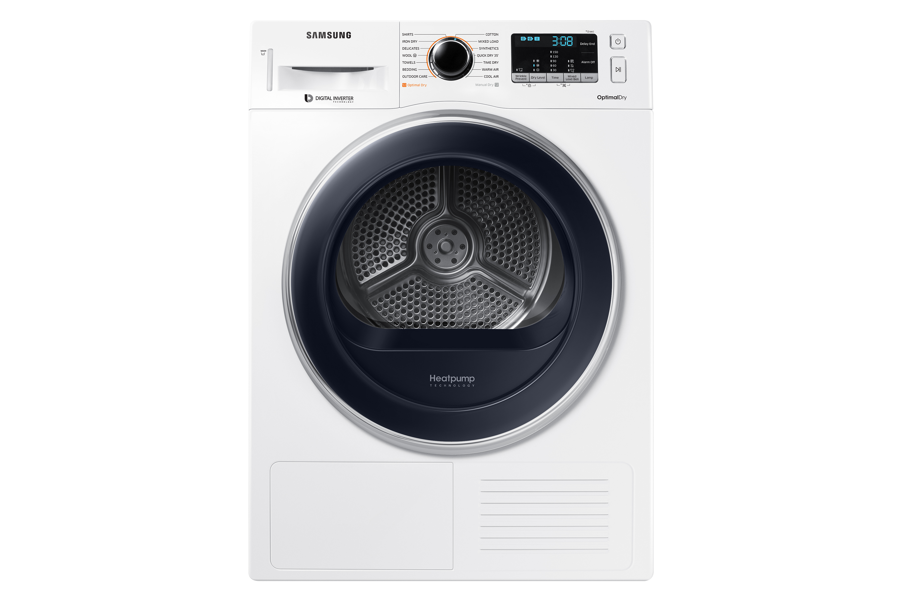 To explain its process further, the Samsung DV90M5200QW Heatpump dryer collects the condensed water from your clothing rather than releasing hot air into the home. Its easy view water tank will show if it needs emptying before another load. One can also connect the tube straight to the drainage to make it a seamless experience.