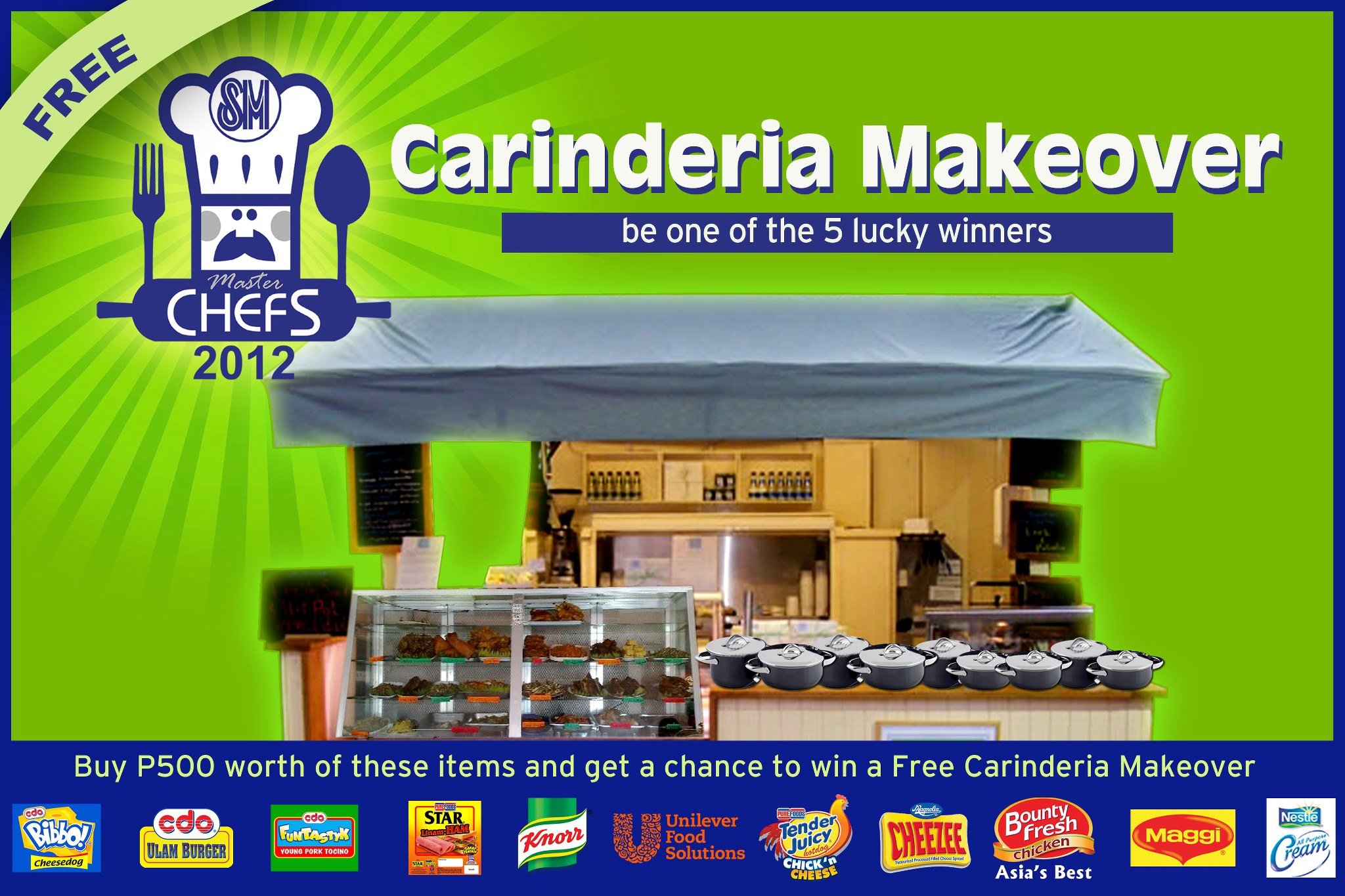A food owner just need to purchase a minimum of P500 worth of groceries inclusive of two sponsor brands. The sponsors are Bounty Fresh, CDO, Nestle, Purefoods, Magnolia and Unilever Food Solutions Knorr. Food business owners are given a loyalty card in where they need to be stamped every time they shop to be qualified to win a makeover.