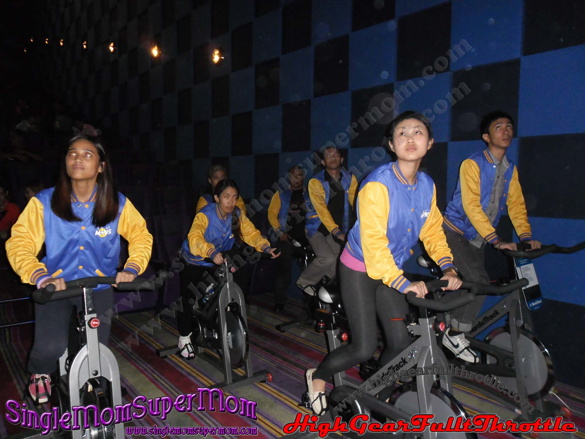 At first they your need to pedal their way while watching the movie. But as nobody is giving up they made it more complicated in alternate they have to stand up for a specific time while pedaling and watching the movie. Still nobody is quitting so now they are required to permanently stand while biking and always eyes at the movie. Doing so the time they spent biking I just guess they already at Subic. hehehe!
