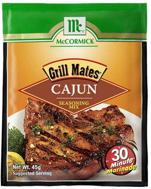 The taste of New Orleans can now be enjoyed in your grilled beef, pork, chicken with McCormick Cajun Seasoning Mix. It contains choicest spices such as paprika and oregano to give your grilled meats a distinct southern flavor