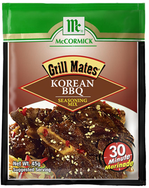 The famous Korean dish Bulgogi, which means “fine beef” is now readily available to savor with your grilled beef, pork and chicken with McCormick Korean BBQ Seasoning Mix. It has the right mix of bulgogi marinade of soy sauce, sesame oil, garlic and other spices to easily provide you an appetizing Korean meal