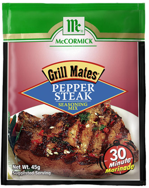 Spice up your grilled beef or pork with McCormick Pepper Steak Seasoning Mix. Made with pepper and garlic bits, it will surely give your grilled meats a flavor boost