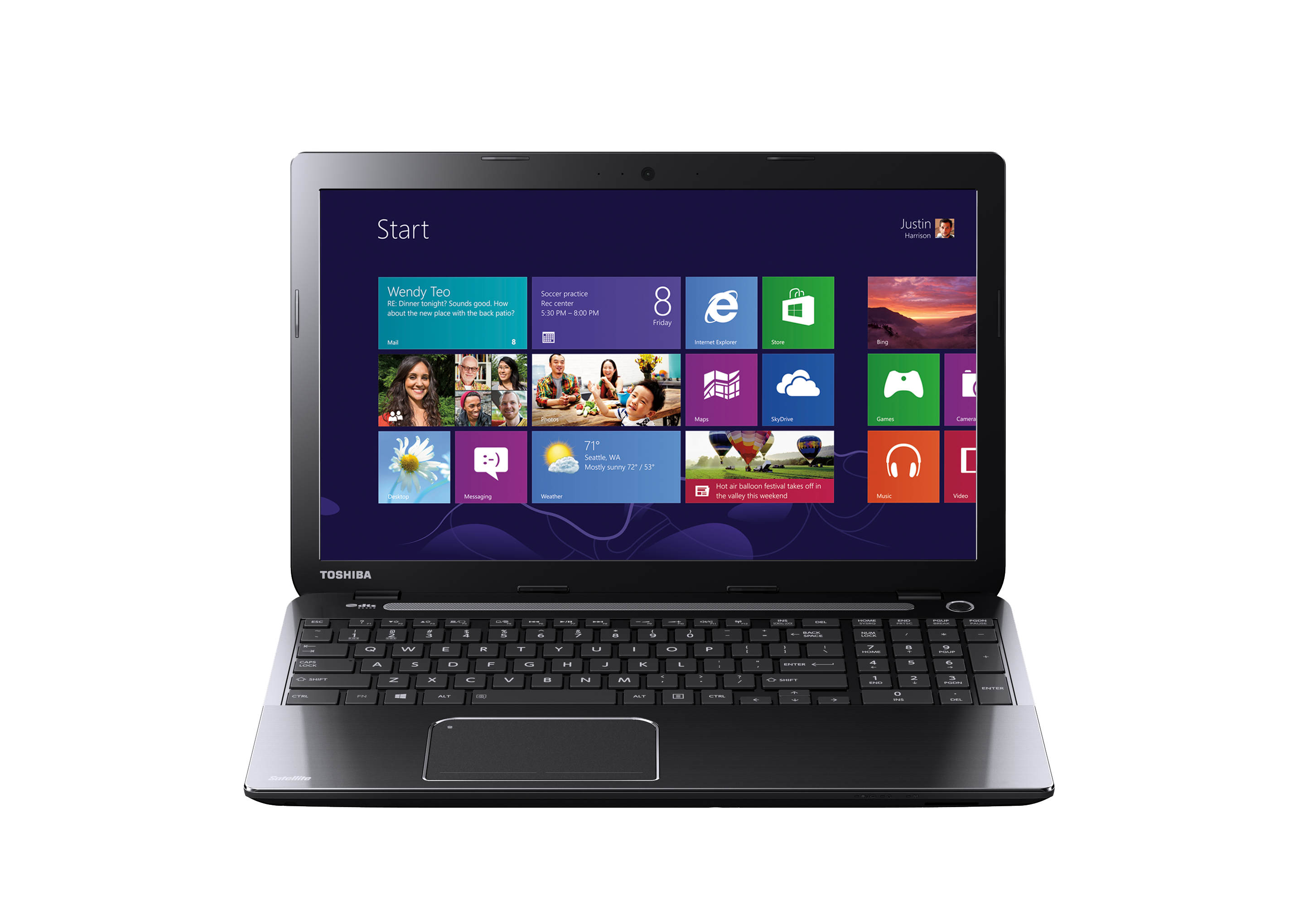 The Toshiba Split Screen Utility is another useful tool for intuitive on-screen navigation. It supports multitasking users by arranging open windows in an orderly way on the wide laptop screen. Controlling and navigating a laptop becomes as intuitive and convenient as using a Smartphone or a tablet.