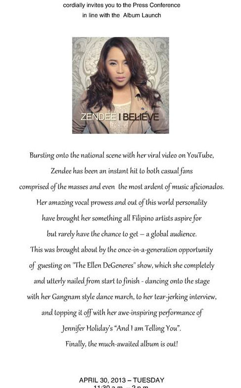At the CD album launch of ZENDEE over lunch, we were gatecrashed by a ‘blogger’ who came late. After registering and acknowledging my presence, he hovered around and came back to me and asked for another kit for his co-blogger who is also his mother. I met them over a dinner for bloggers a few months back since they were assigned by a website. Upon checking the site’s editor, we were told that he’s not assigned. So there you go… Loot bloggers on the loose. This is to warn my other PR assocoatrs, event organizers, our media friends… Good evening…
